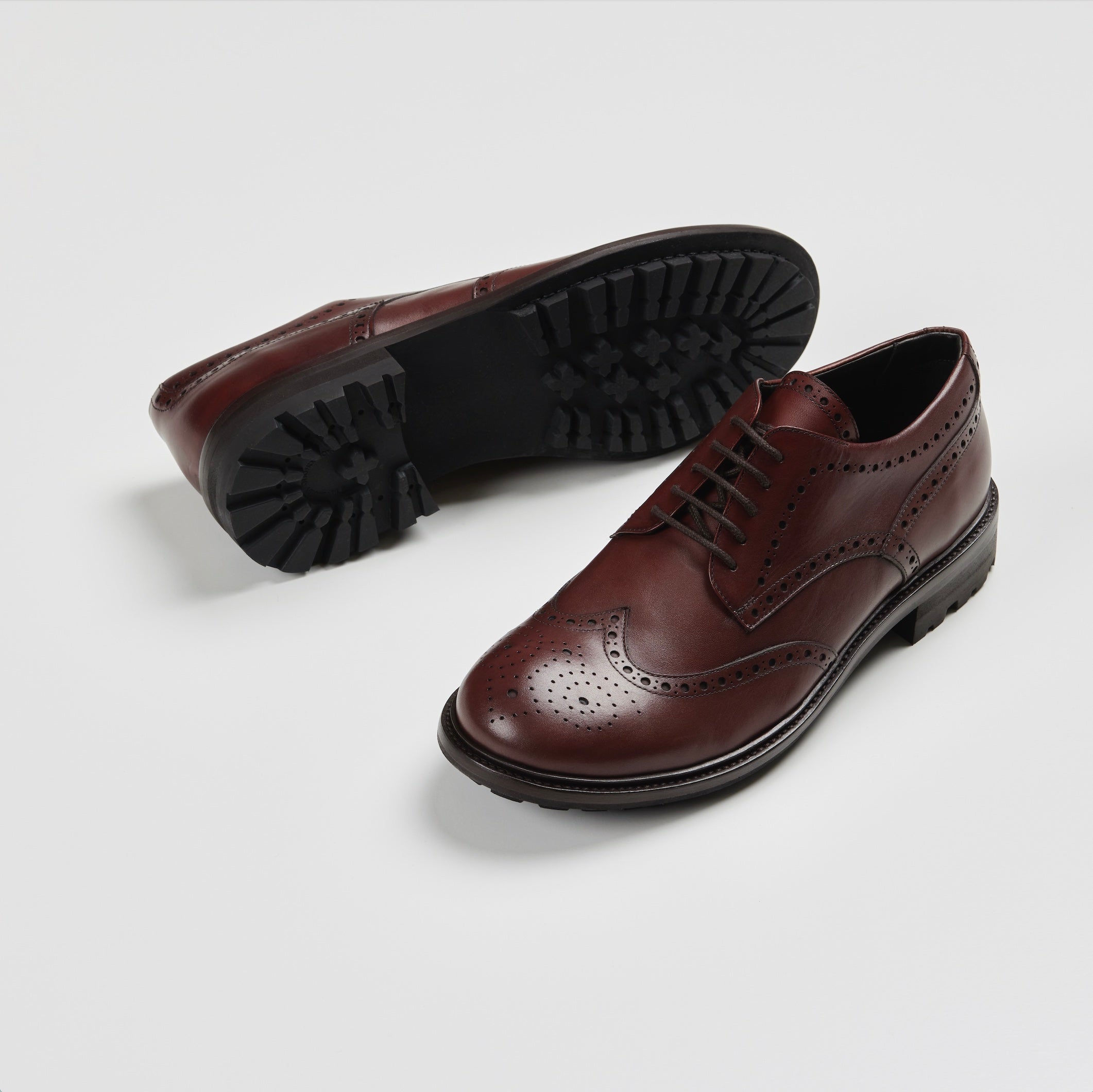 Rødlig-brun derby-inspireret round toe med broderede detaljer. Spiga round toe er lavet i 100% Italiensk kalvelæder og med en polstret lædersål for ultimativ komfort og fodens velbefindende. Skoene er unisex og fås både til mænd og kvinder.